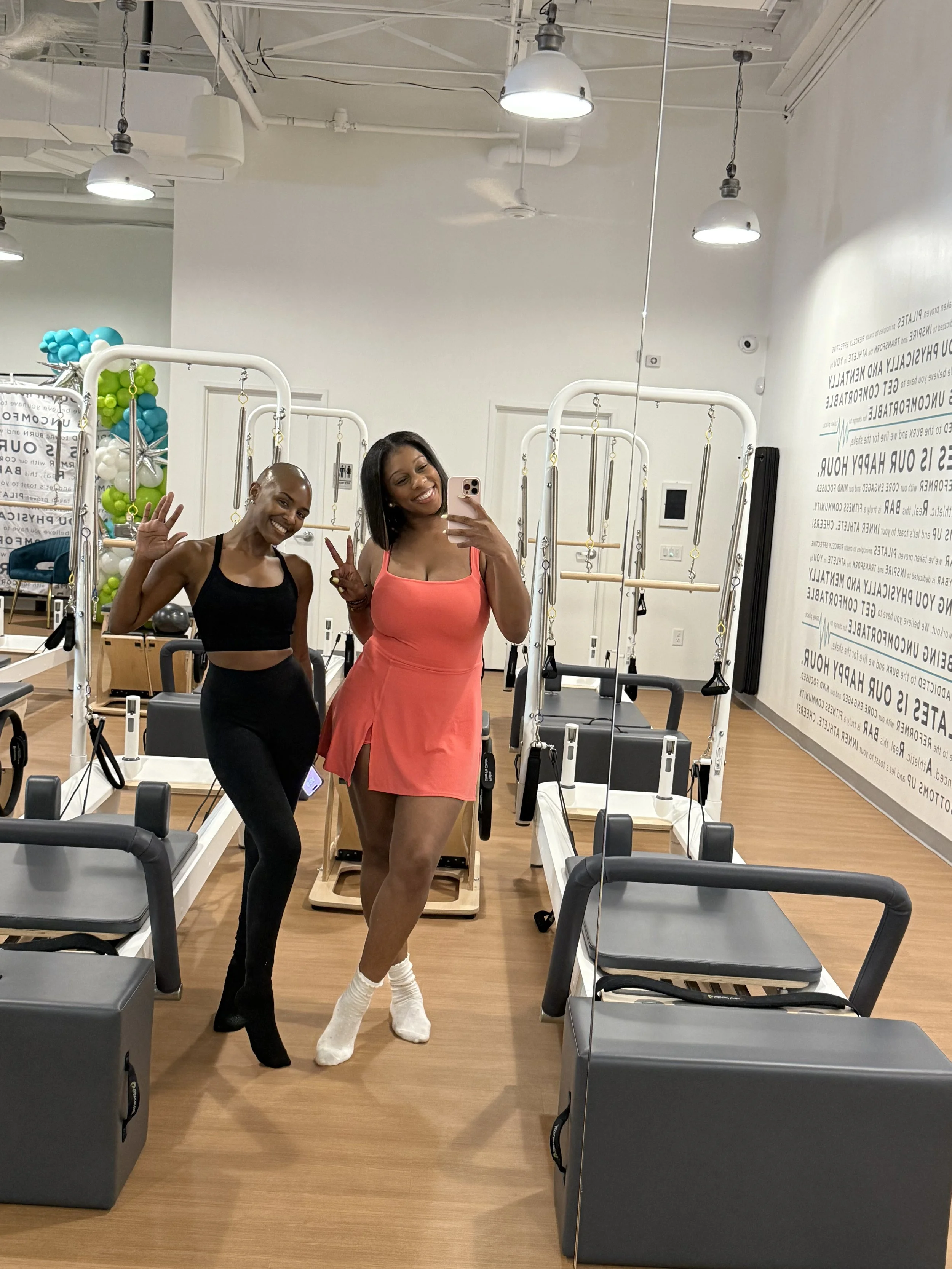 I got invited to the grand opening of BODYBAR Pilates – Vinings location, and instead of rushing into the weekend, I chose to slow it down with movement, community, and a little post-work joy. The event blended fitness and lifestyle in the most handpicked way. From a full Pilates workout to vendors serving up everything from fresh juice to permanent jewelry.
